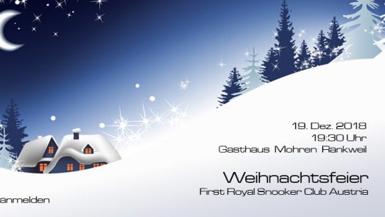 28. November 2018Auch in diesem Jahr lädt der “First Royal Snooker Club Austria” zu unserer Weihnachtsfeier ein Treffpunkt : Gasthaus Mohren Rankweil… Weiterlesen